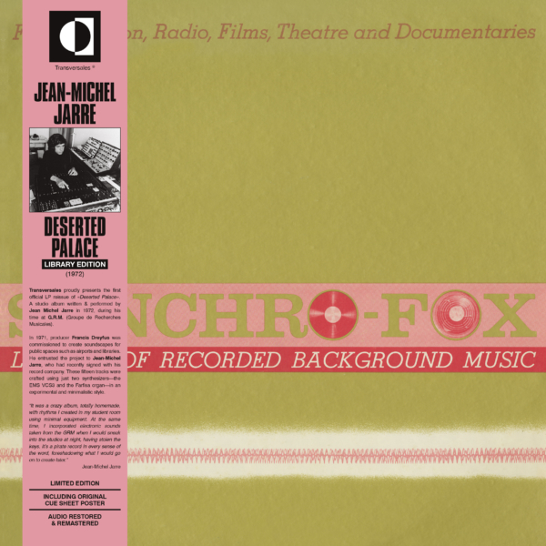 Transversales Disques proudly presents the first official LP reissue of Deserted Palace, a studio album written and performed by Jean-Michel Jarre in 1972 during his time at G.R.M. (Groupe de Recherches Musicales).