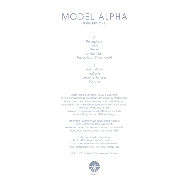 All tracks recorded at Studio Prismes – Paris by Model Alpha,