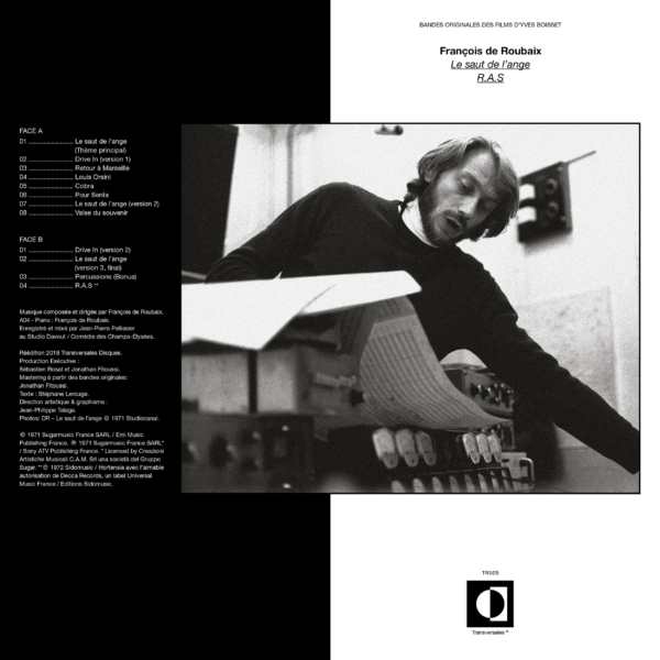 Never before released on LP, the complete original soundtracks of French cult film composer François de Roubaix for director Yves Boisset. Two films that embody the two sides of Francois de Roubaix’s approach to recording. For “Le Saut de L’Ange” (1971), the self-taught composer wrote an orchestration for some fifty musicians playing strings, woodwinds, brass and percussion with two distinct solo instruments alternating the main theme: Indian Sitar on the one hand and accordion on the other. This beautiful score creates the seam that binds Bangkok to Marseille, the two places where the action takes place.