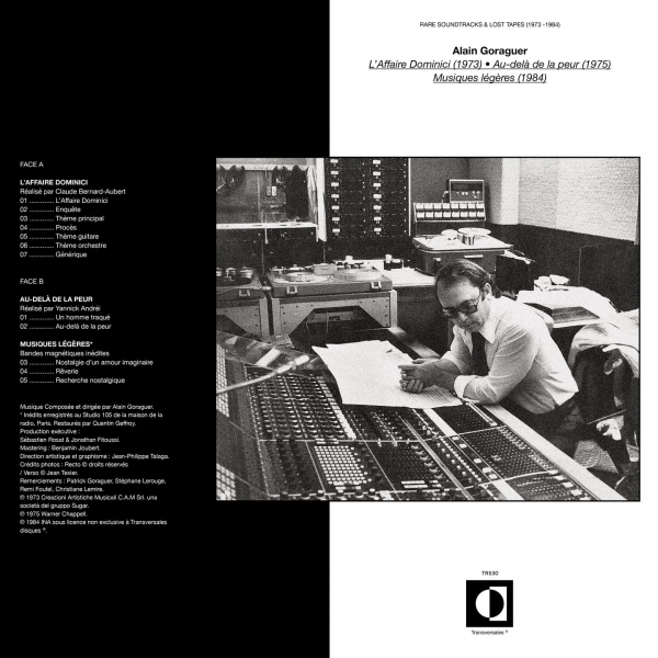 During that same period of time, Goraguer wrote two rare and beautiful scores using the same masterclass arrangements. On L’Affaire Dominici (1975), Alain Goraguer creates a theme of great melodic clarity from a palette of breathy flutes, clavinet D6 baroque textures, wah-wah guitars and slow-paced drums that clearly reminds La Planete Sauvage’s atmosphere. The same can be said about the score of Au delà de la peur (1975) with its descending clavinet melody, twanging bass riff, funky drums and flashes of bended electric guitars. This record also includes never before released tracks found in the vaults of French national radio: beautiful and timeless orchestral compositions recorded at Studio 105, Maison de la radio.